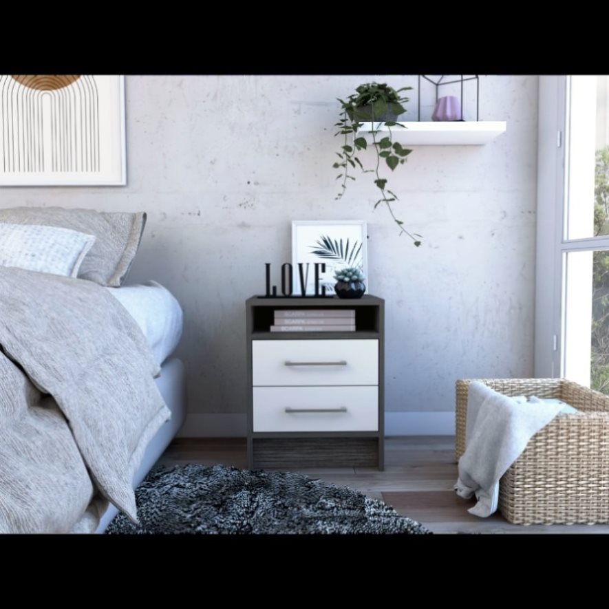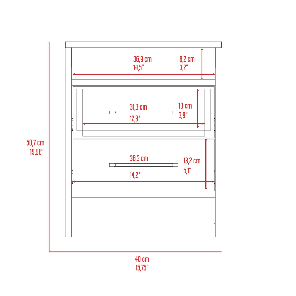 19.9" High NightstandFeaturing One Open Shelf where you can easily display your electronics over nightIncludes Two Drawers for extra storage in your roomMetal hardware for smooth running drawersProduct Dimensions (Approximately)14.85 x 37.34 x 50.55 (W x D/L x H) cmTotal Weight14.85 kgsAttributesMain Color       : Main Material :