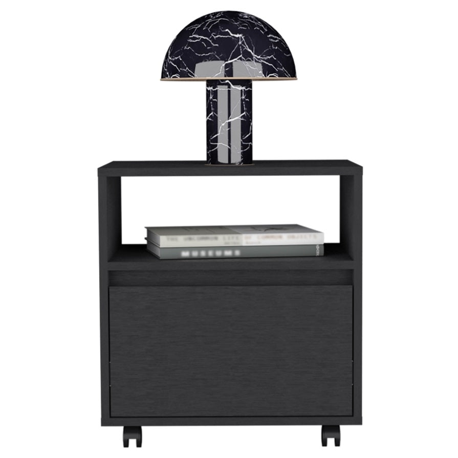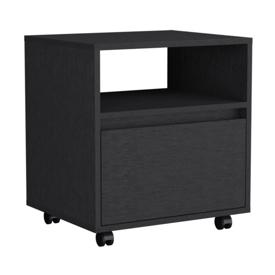 Nightstand 20"H, with One Open Shelf, 1 Drawer and Casters, Black B097133212