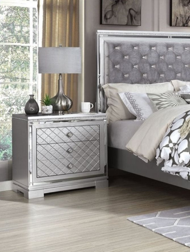Glam StyleSilver ColorBall-bearing GlidesFelt-lined Top DrawerUSB ChargerHidden Jewelry DrawerEnglish Dovetail Drawer ConstructionListing Includes :- 1x Nightstand Only. Product Description Product Description:- Talking about taking glam to the next level! Straight lines and simple silhouettes are reminiscent of the modern era, but the stunning details bring it up a notch. Front...