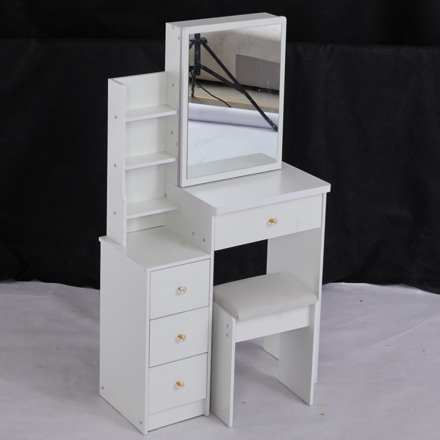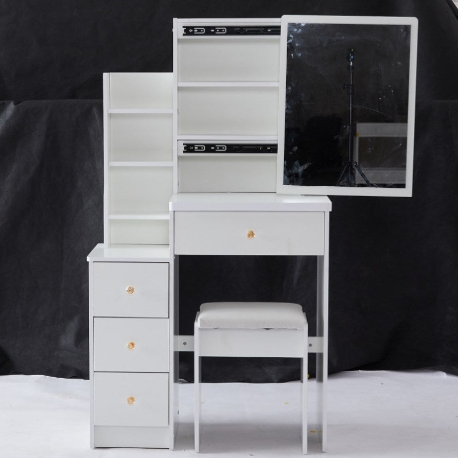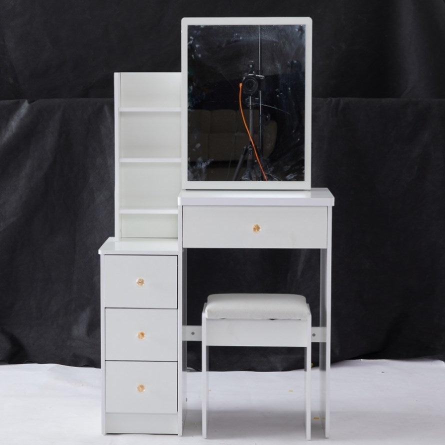Small Size Left Bedside Cabinet Vanity Table Cushioned Stool, Extra Large Sliding Mirror, Multi W936P226029