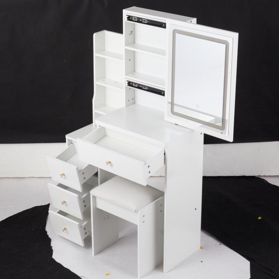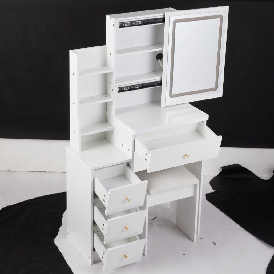 [Includes a padded dressing table stool]: The packaging includes a dressing table and a padded stool. You will no longer need to make additional purchases. This will greatly save you time and delivery cost.