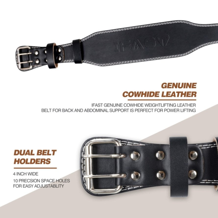 - 【Leather Weight Lifting Belt】IFAST 4” width leather weightlifting belt features genuine premium leather with proprietary manufacturing techniques, delivering the soft and tough, high gloss leather belt on the market. The double-stitched design and dual-pronged buckle of your new premium leather deadlift belt are made to last a seriously long time. The 4” contoured design gives the best feel, flexibility and support for both men and women