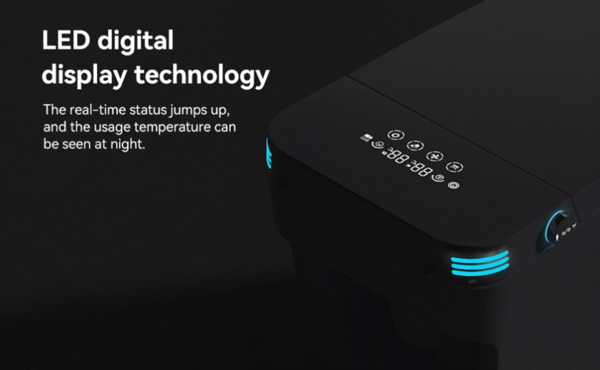 Designed for comfort and convenience, our smart toilet offers instant warm water, warm air drying, night light, heated seat, LED display, seat temperature adjustment, auto flush, remote control, enhancing the overall user experience.