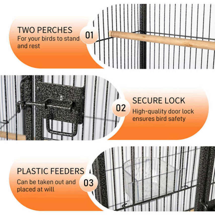 2. Enhanced Safety & Security: Tight bar spacing and a sturdy front-door latch provide a safe enclosure for your pets, preventing escapes and ensuring they stay protected. Rest easy knowing your feathered friends are safe even when you're not around.
