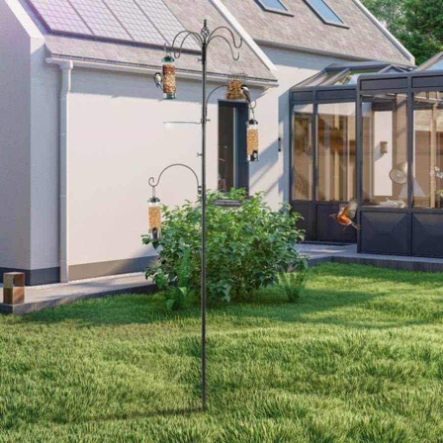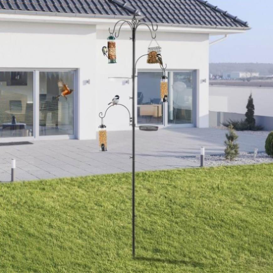 93inch Iron Bird Feeder With Six Hooks, Bird Feeder Black Courtyard 44782895