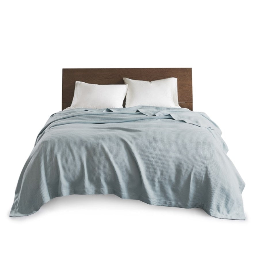 Certified Genuine Egyptian Cotton bedding blanketSoft, tightly woven blanket for reduced pilling and snaggingBreathable weave for warm nightsMachine washable for easy careOeko-Tex Certified, includes no harmful substances or chemicals Description Wrap yourself up in the luxurious comfort of the Madison Park Egyptian Cotton Blanket. This ultra-soft Light Blue blanket in...