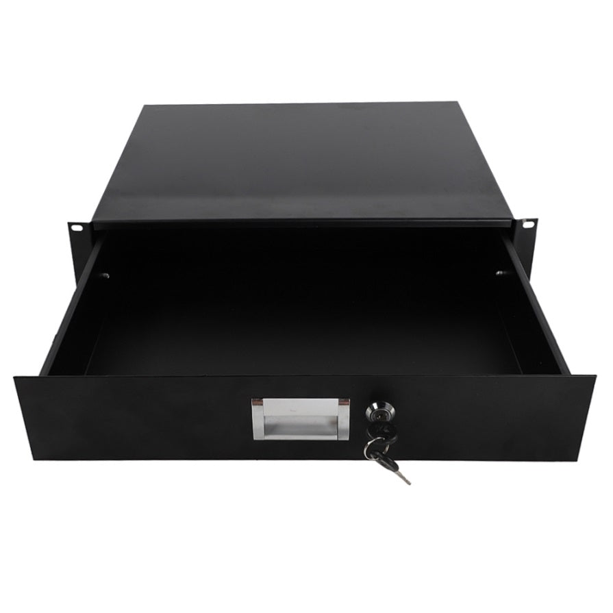 Are you looking for a practical and durable equipment cabinet? Here you are in the right place! This 19" 2U Steel Plate DJ Drawer Equipment Cabinet with Keys will be your best choice. It is perfect for storing anything from software, tools, paper, supplies, cable management or patch cables. With the solid construction and lock design, it is safe and convenient for your daily use. Durable and reliable steel material makes it is more and more popular among people. Don't miss this chance! Just take an order!