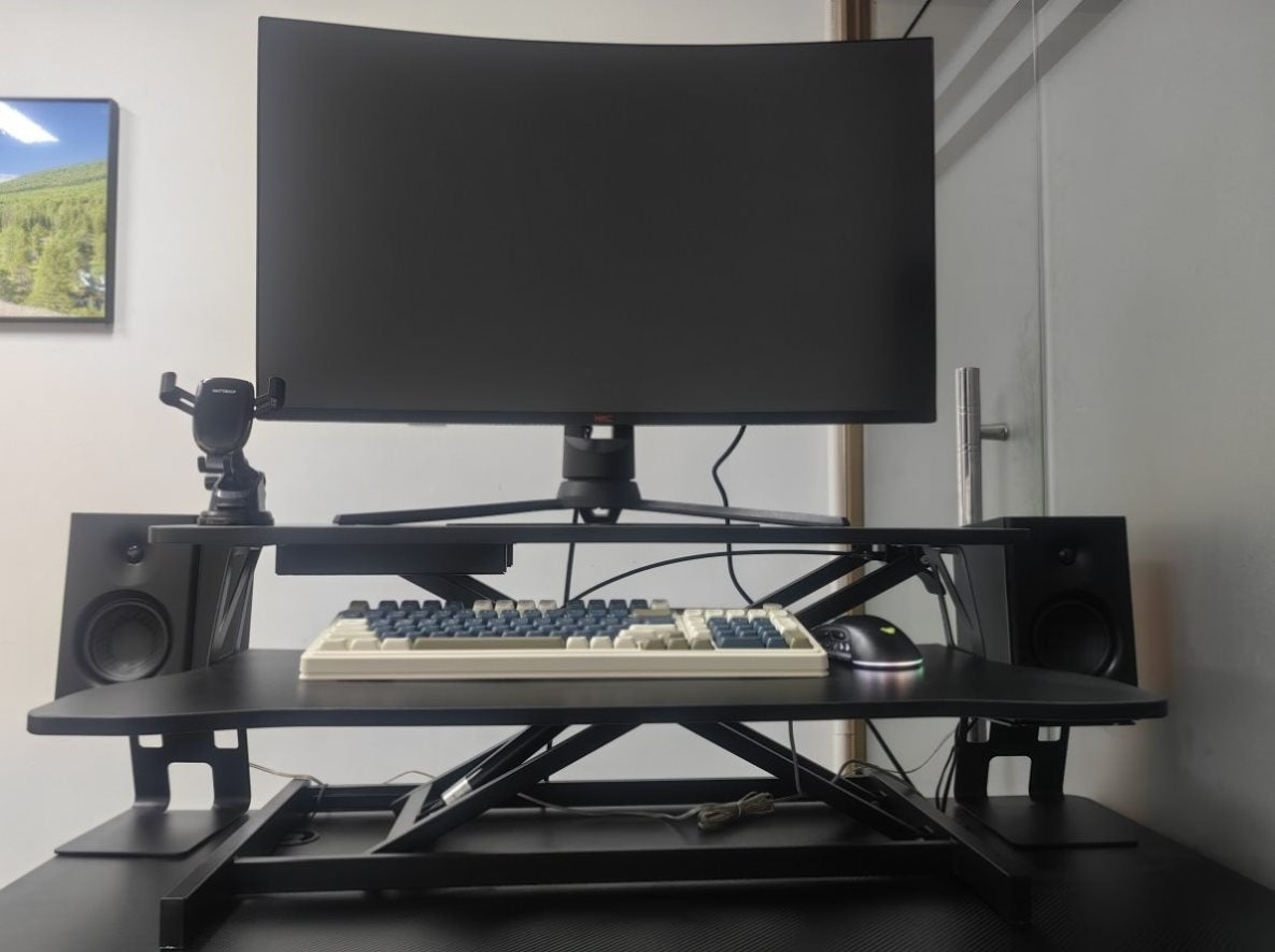 Ergonomic design standing desk. The solid structure keeps your desk riser steady and the maximum weight hold up to 30 lbs.