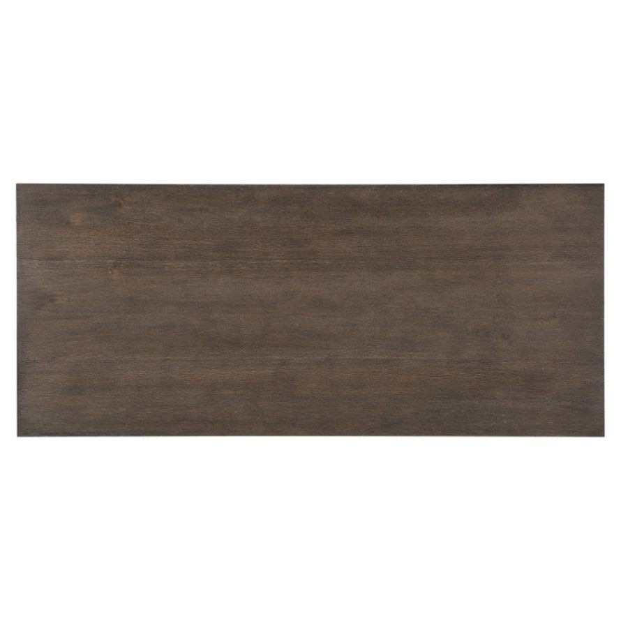 Made of acacia veneer, wood and engineered woodDistressed dark oak finish1 hidden dovetail drawer with ball bearing glidesMetal brace Description & Dimensions Bold curves provide elegant contrast to the unique look of the Toulon Collection. Designed to assist you in your daily routine, the desk serves to provide ample workspace...