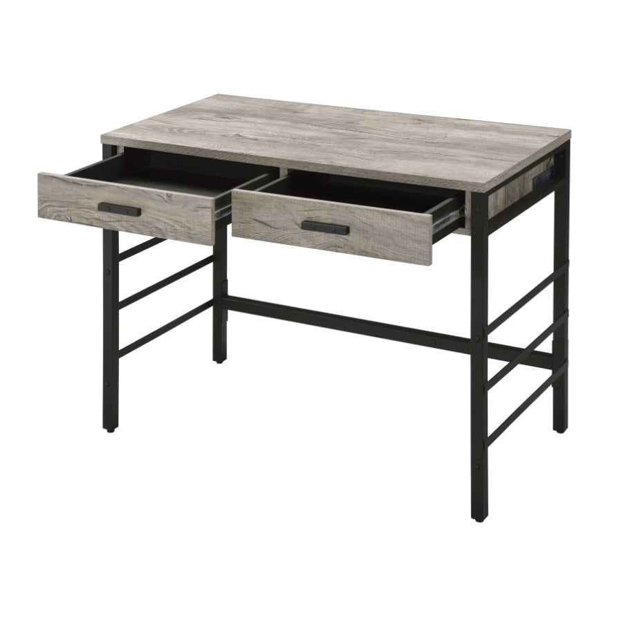Light Weathered Oak and Black Writing Desk with 2 Drawers B062P184545