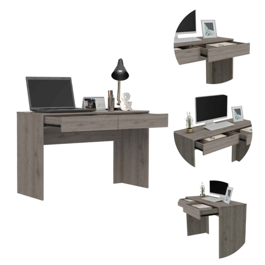 The (47.32"W x 17.71"D) work surface offers plenty of space to workTwo spacious drawers (20.51"W each x 3.14"H) keep your items organized and within reachThe perfect solution for anyone needing a workspace at homeThe light gray manufactured wood finish gives it a clean, modern look Romance Copy The Writing Desk...