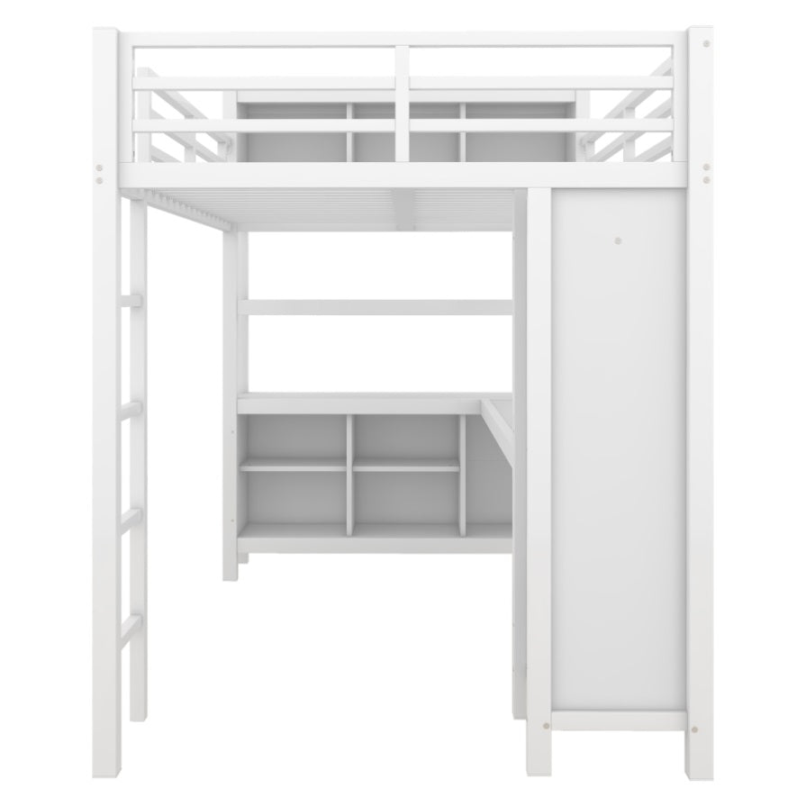Metal Loft Bed with Wardrobe And L-shaped Desk, Full Size Loft Bed with Storage Cubes and Shelves, 73922889