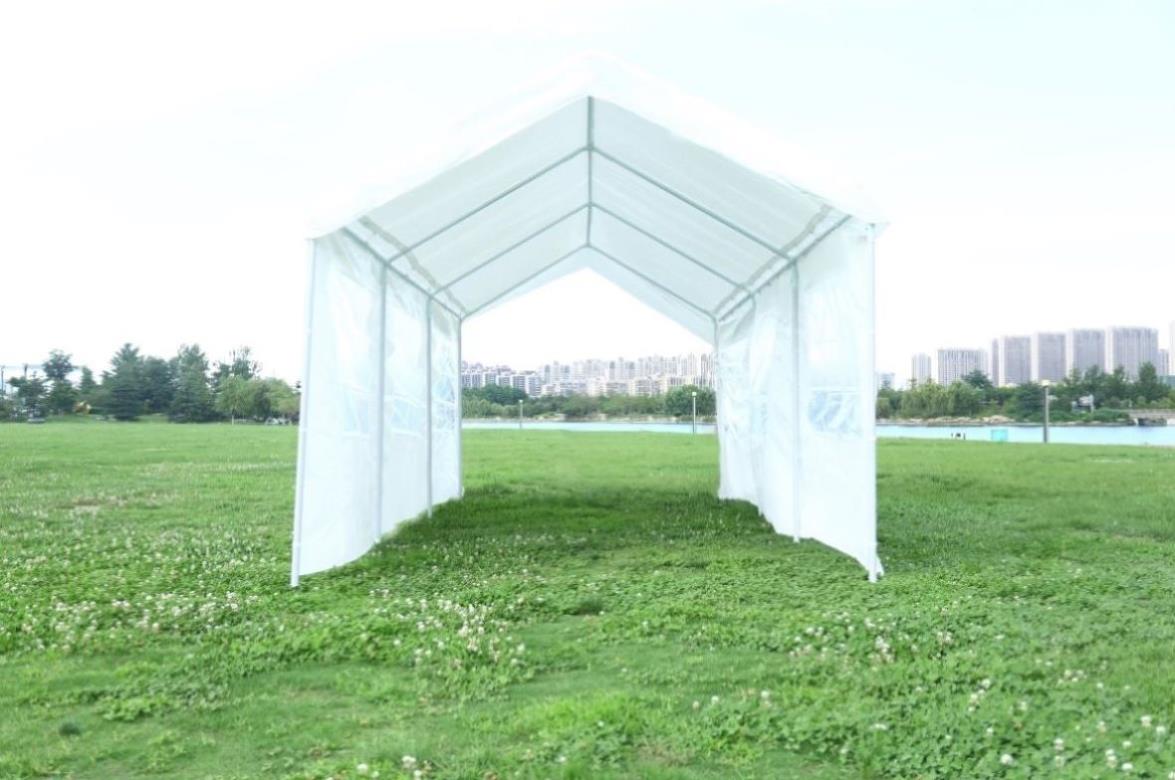 Quick and easy setup 2 removable sidewalls & 2 removable doors for cross ventilation and venting. heavy duty 38mm powder coated tube size 10x20x9ft 160g PE UV protected ,waterproof multifunction use,wedding, birthday party, graduation party, flea markets, car tent, family parties, picnics, sports events, outdoor vendors, craft fairs, job sites and camping trips, etc. Packaging 1xsteel frame 1xtop cover 2xsidewall 2xzipper door 1x necessary assembly parts r 2xsidewall 2xzipper door 1x necessary assembly parts
