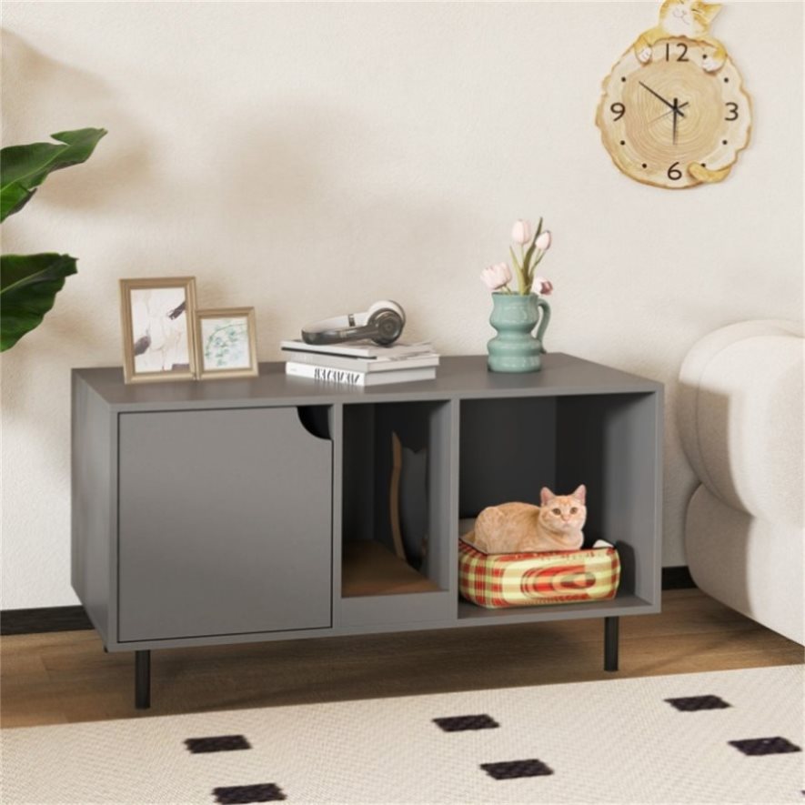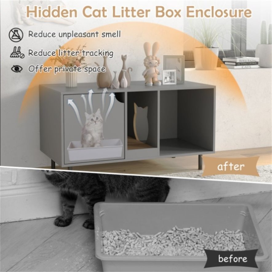 ● Enhanced Privacy: This hidden cat litter box enclosure offers private space for kitten potty time, allowing cats to find a sense of security and belongings in the enclosed environment. It could also be a good solution to reduce unpleasant smells and reduce litter tracking.