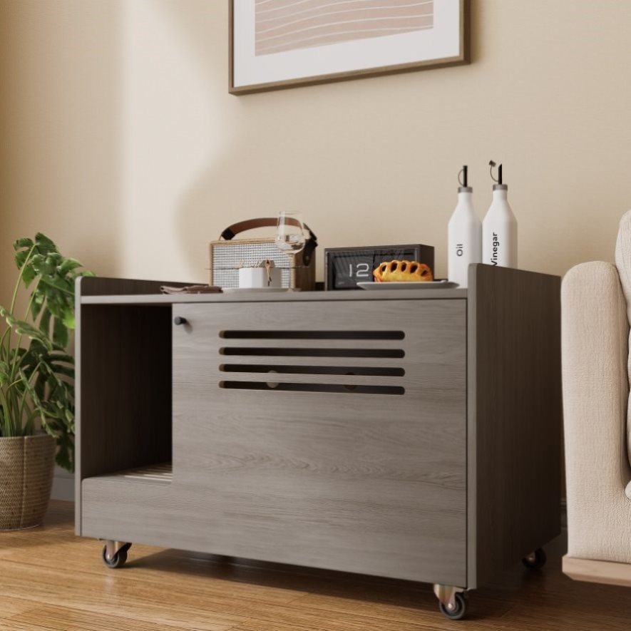 3.Ventilation Grille: The litter box cabinet adopts 4 grille air convection design, which can control indoor odor and keep the inside of the litter cabinet fresh and breathable, enhancing lighting.