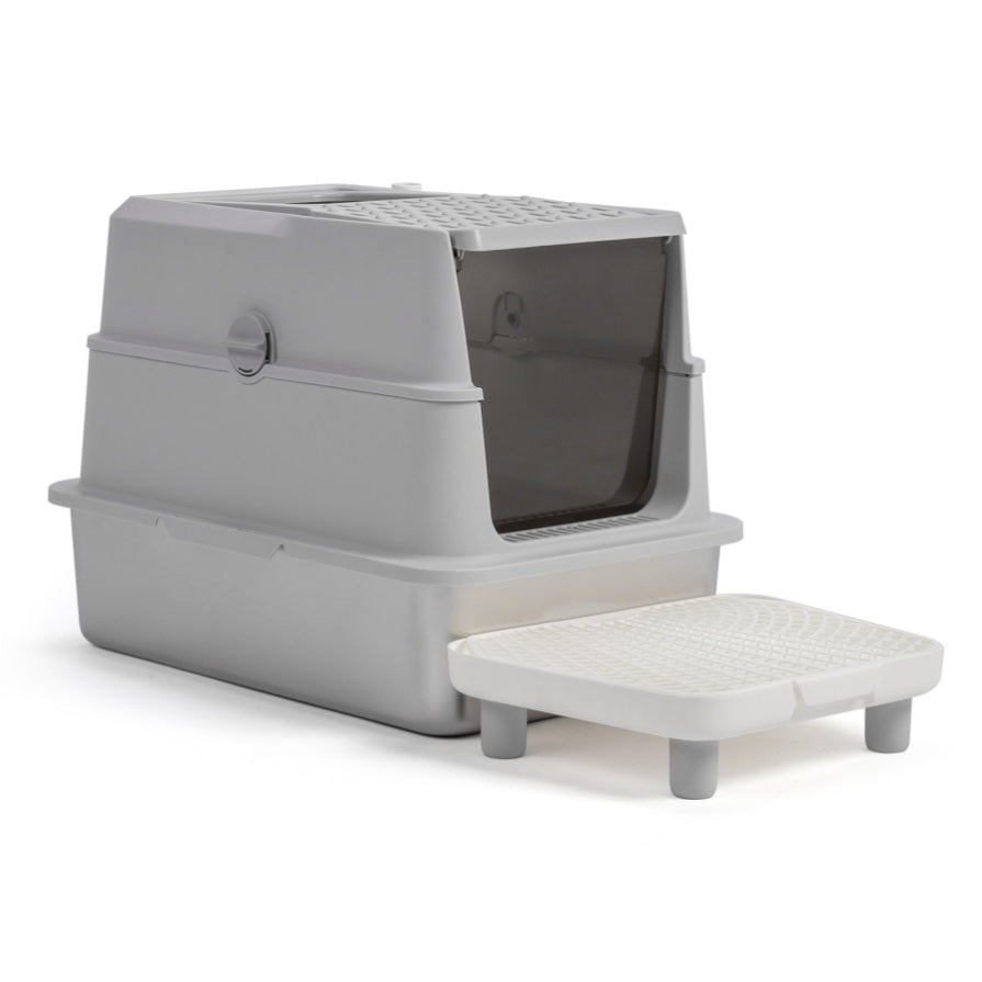 Give your cats the space and cleanliness they deserve with this extra large stainless steel cat litter box. Designed with durability and functionality in mind, this covered litter box features a spacious interior, dual entry options, and a smooth non-stick surface for hassle-free cleaning. The semi-enclosed lid helps control odor and improves ventilation, while the stainless steel base resists staining and lasts significantly longer than plastic alternatives. Complete with a litter scoop and filter pedal that reduces litter tracking, this all-in-one solution is perfect for large cats or multi-cat households.