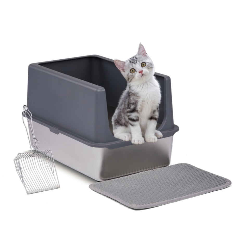 The Stainless Steel Cat Litter Box is your ultimate solution for a cleaner, more hygienic pet environment. Made from rust-proof stainless steel with a spacious, easy-to-clean pan, this litter box is built to withstand daily use while maintaining an odor-free experience. High sides keep litter contained, making it perfect for large cats or multi-cat households. Complete with a non-slip mat to catch stray litter and a convenient stainless steel scoop, this setup offers unparalleled convenience for both you and your feline friends.