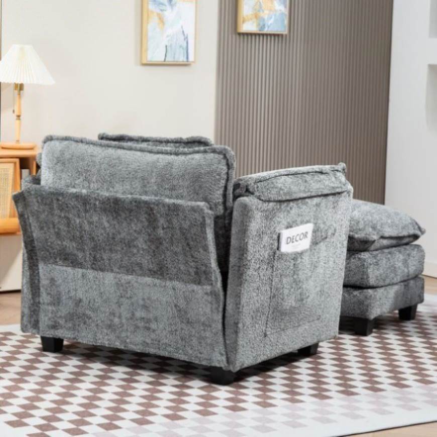 The sofa with ottoman can be especially beneficial for people who want to relax and unwind after a long day.Soft and skin-friendly to the touch, bringing warmth and comfort and a strong wrapping feeling.There are storage bags on the side for magazines and other small items.Simple design goes with a variety of home styles.