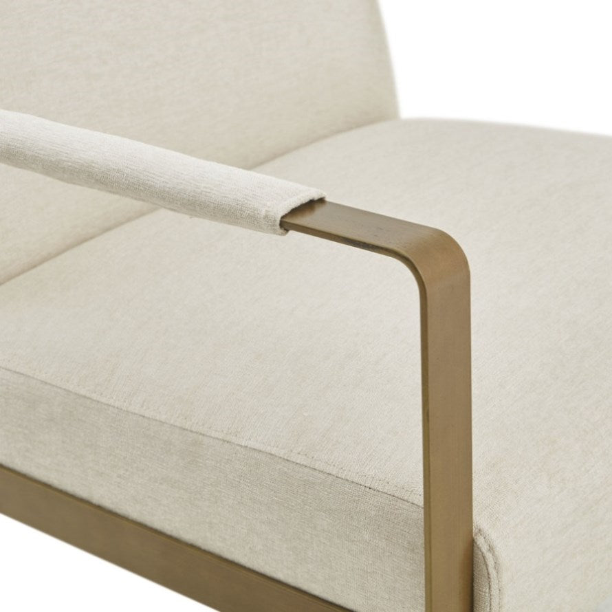 Apart of Martha Stewart brand, Perry Street collectionSeat dimensions: 24.75"W x 20.25"D x 19.25"HMetal arms and legs in a antique gold finishUpholstered seat and back, attached cushionHigh-density foam offers superior support and may feel initially firm. Over time, the foam will soften and provide optimal comfortAssembly required, tool included Description...