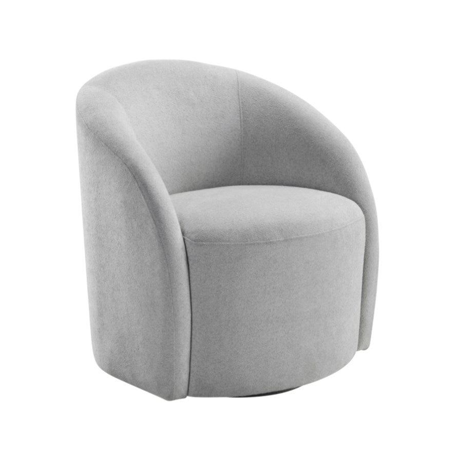 Transform your favorite corner into a cozy retreat with this light gray boucle swivel barrel chair. Featuring a sturdy solid wood and plywood frame with a durable metal swivel base, this chair offers both style and functionality. The foam padding over pocket coils provides exceptional support and a luxurious seating experience, while the soft boucle fabric upholstery adds a touch of sophistication. With a 360-degree swivel and no assembly required, this chair is perfect for enhancing your living room, bedroom, or home office with a blend of style and practicality.