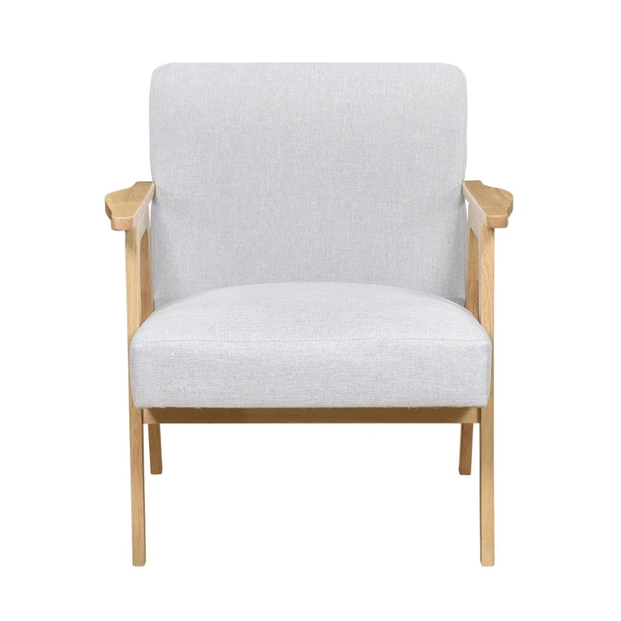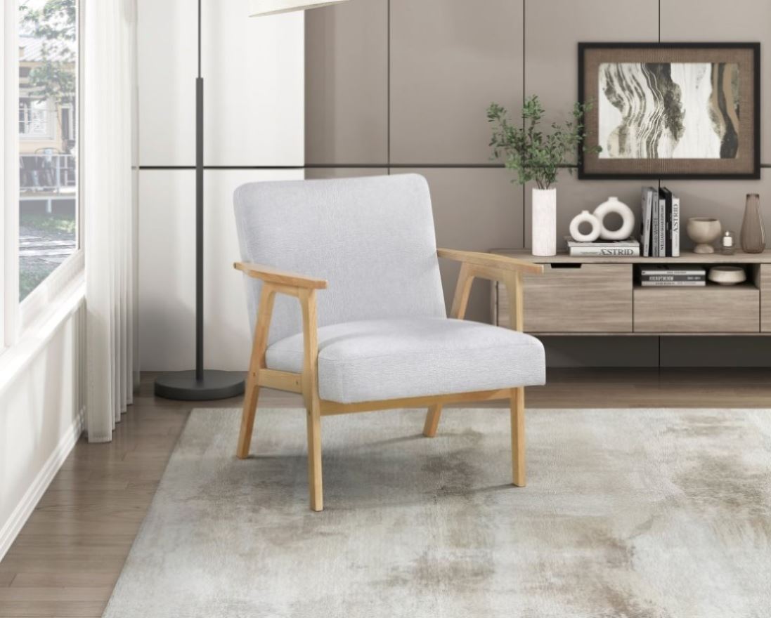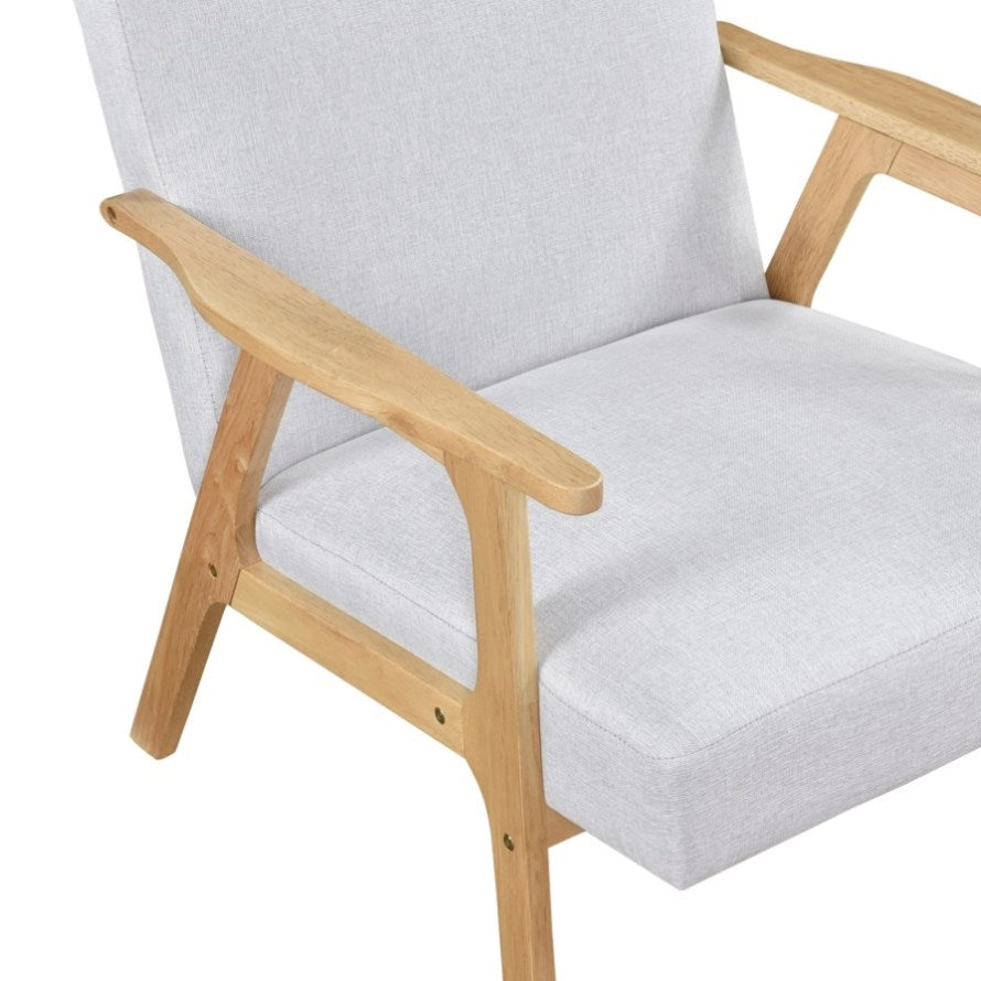 Bring a touch of refined mid-century style to your home with this elegant Wood Arm Accent Chair. Featuring a solid wood frame with a beautiful natural finish, this chair embodies the clean lines and minimalist aesthetic of the era. The soft, textured linen fabric upholstery in a neutral tone complements any interior design, offering both comfort and sophistication. With its generously cushioned seat and back, this chair is perfect for relaxing after a long day or adding a stylish focal point to your living room, bedroom, or office. Enjoy the blend of classic design and modern comfort with this versatile accent piece.