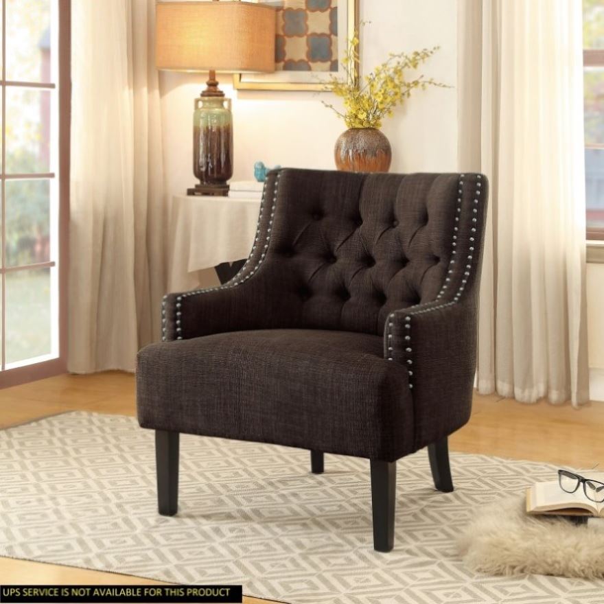 Modern Traditional Accent Chair Button Tufted Chocolate-hued Textured Fabric Upholstery Solid Wood B011P182652