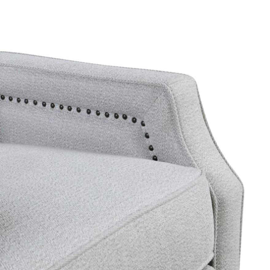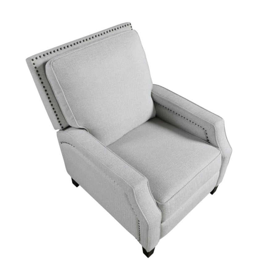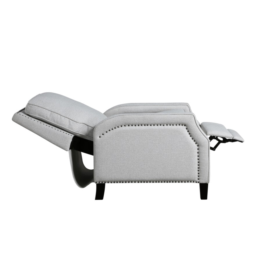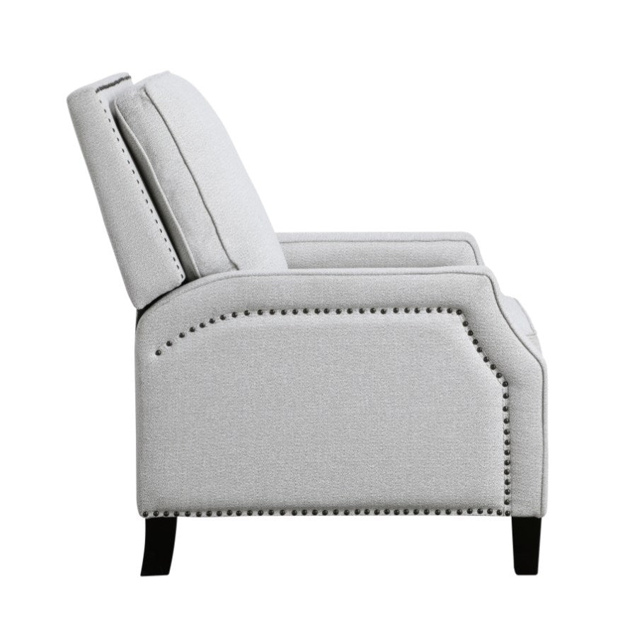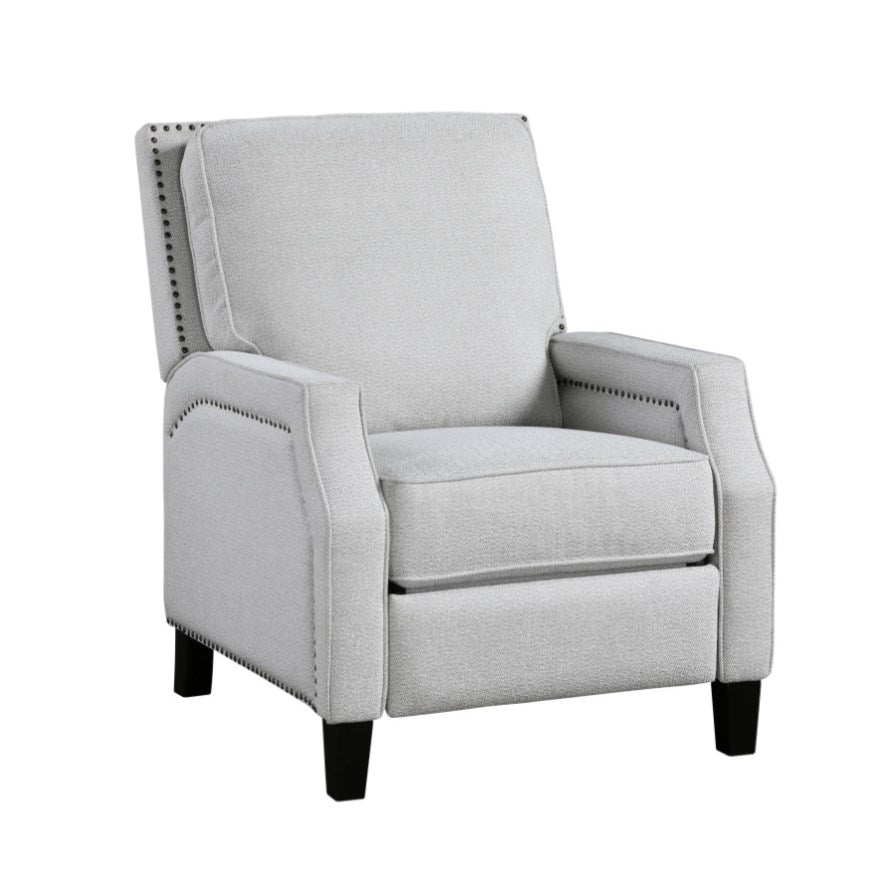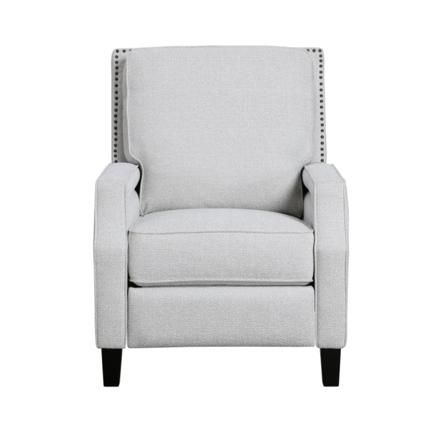 With a reclining mechanism that is engaged with your push, settling into the Berenson Collection is done so with ease. The tailored profile of the push back reclining chair is covered in gray chenille and features nail head trim, lending to its transitional style, creating the perfect complement to your home’s décor.