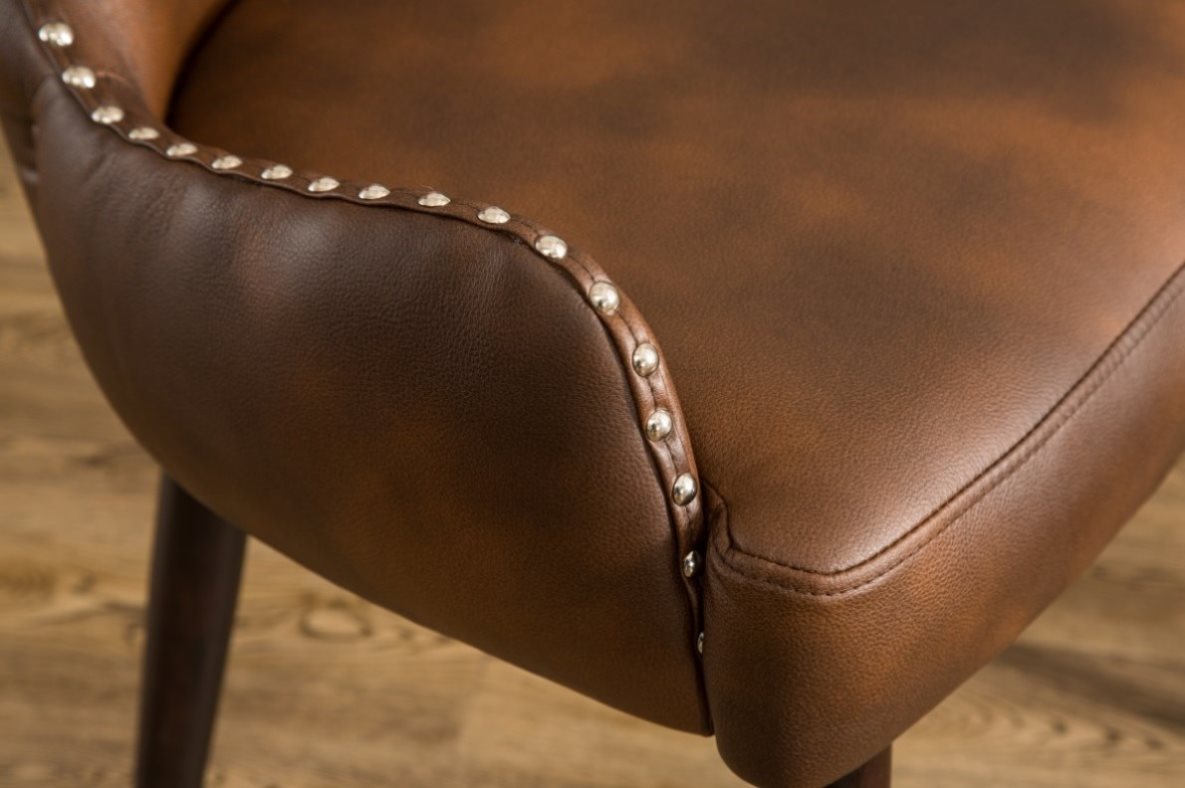 High-quality plush high-density foam cushioning upholstered in a warm brown leather like fabric