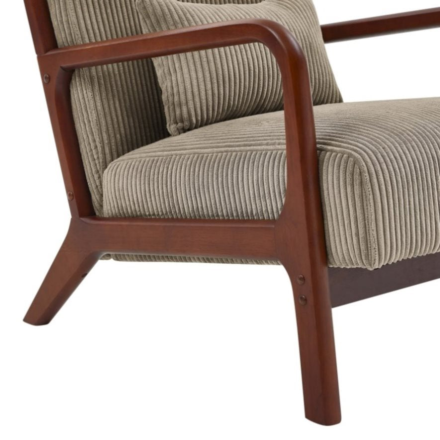 The seat and backrest are upholstered in plush, ribbed corduroy fabric in a soft tone, adding both texture and coziness.