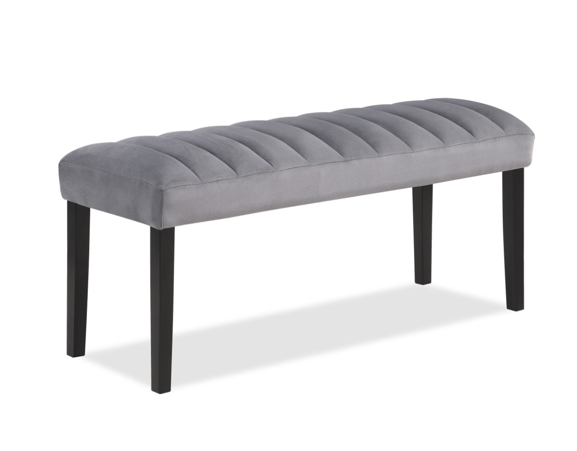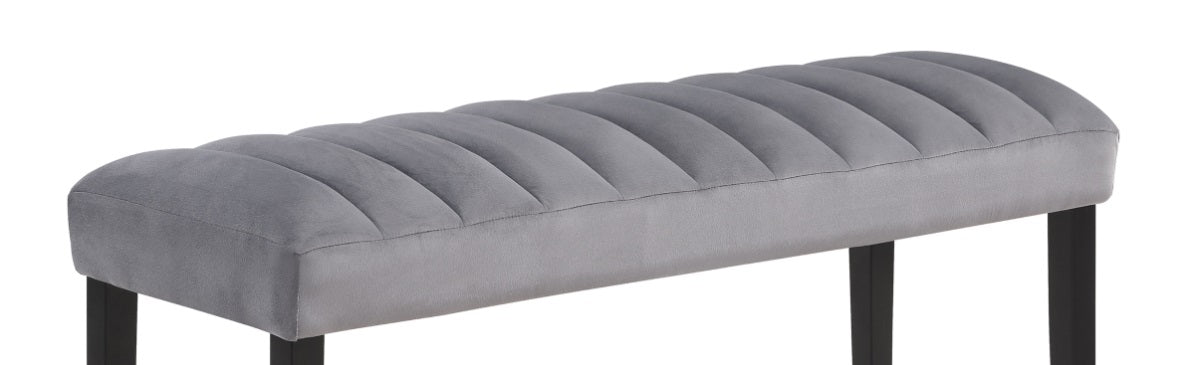 Contemporary StyleGray/Black FinishVelvet Upholstered SeatCushion SeatSolid and DurableDurable & Strong Wood Product Details Product Dimensions: Bench : 46" X 16" X 20.3"H Product Description: Include additional seating in your dining area with this dining bench from this collection, It has an upholstered seat and wood base finished in black. Make...