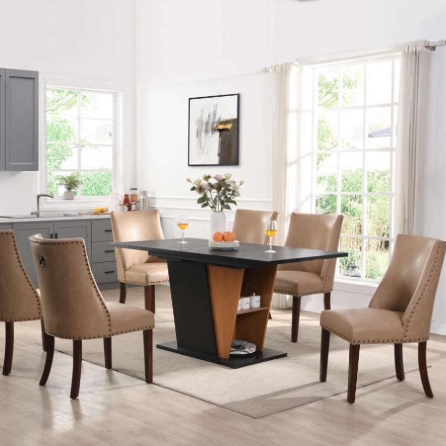 Modern Minimalist Aesthetic – Featuring a V-shaped metal support base combined with wood finishes, this table offers a sleek, contemporary look that complements various home décor styles, adding sophistication to your dining room.