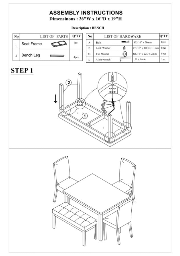 Contemporary StyleEspresso / Brown FinishCushioned SeatsFaux Marble TopTufted Seat BenchParticle Board, RubberwoodListing Includes :- Dining Table, Bench And 3x Side Chairs Only. Product Description Description:- This 5-piece dining set's simple and cozy dimensions make it a great fit for apartment kitchens. Each armless chair features a full back and is...