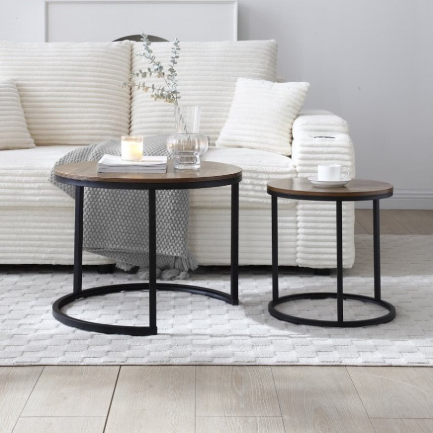 This nesting coffee table set of 2 . This round nesting coffee table does not take much space so it also fits with small rooms.