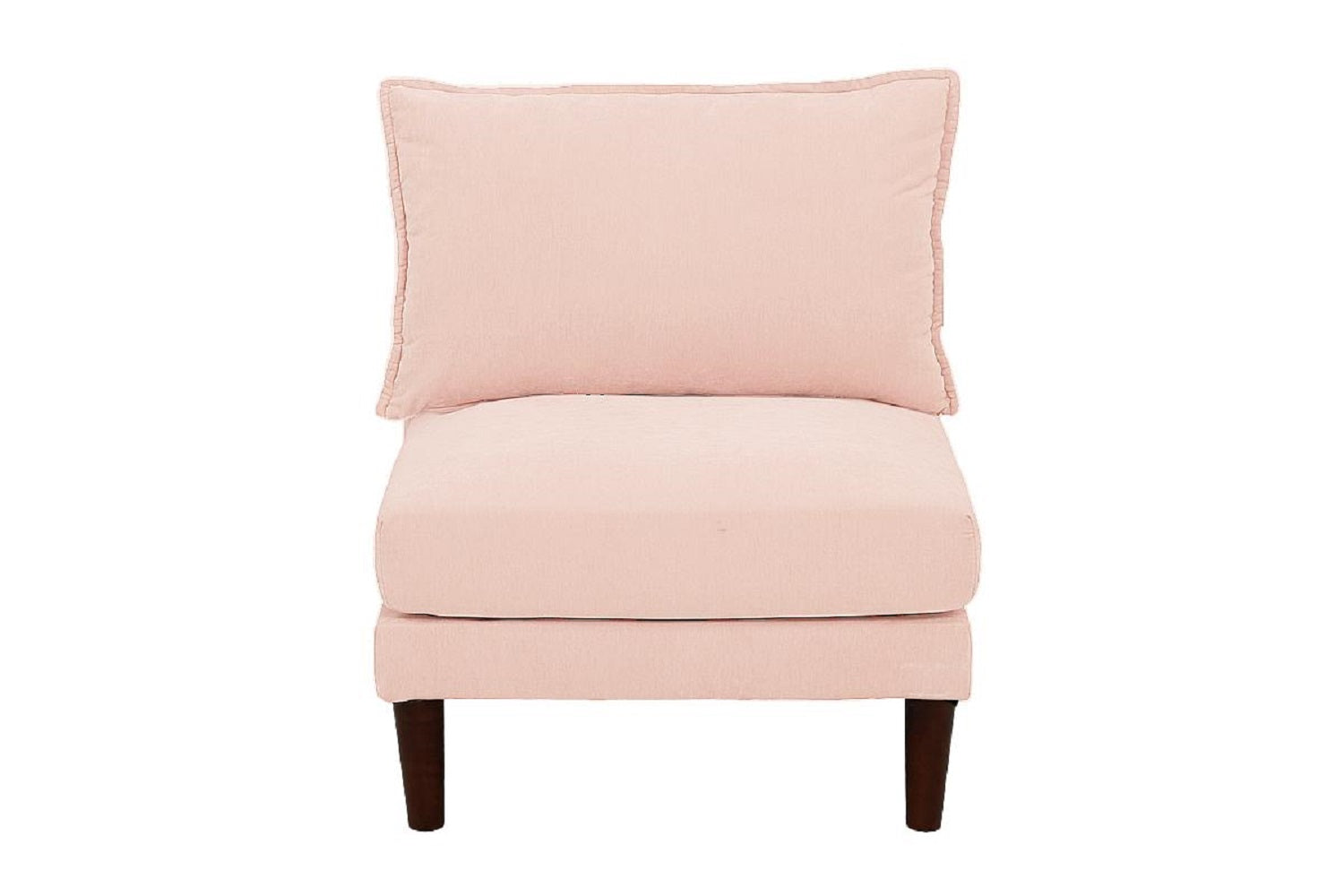 Contemporary StyleBlush Pink ColorModular PieceCushion Back Included.Suede - Blush Morgan FabricPillow IncludedPlush Couch , wood LegDimension - Armless Chair :- 33" x 27" x 31"HListing Includes :- 1 x Armless Chair only. Description Product Description:- As the saying goes, variety is the spice of life. This modular sectional piece echoes...