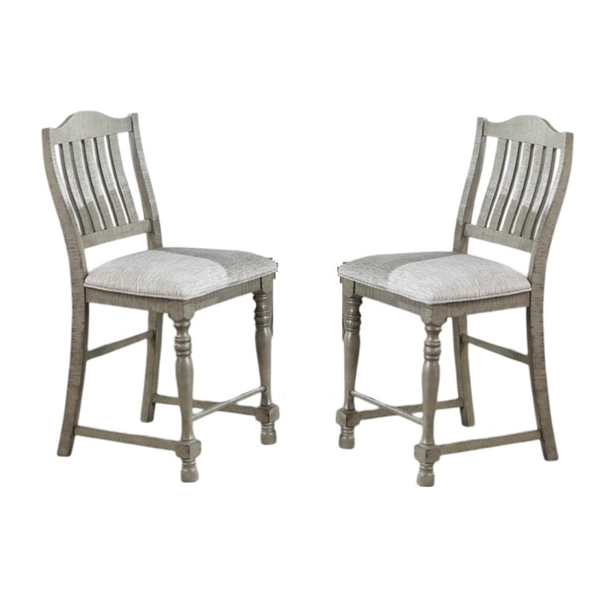Description :- Whether you're hosting a lavish dinner party or simply enjoying a quiet meal at home, this dining chair offers the perfect combination of style and functionality. Crafted with attention to detail, the front legs showcase a stunning carving, adding a touch of luxury to your dining area. Sink into the plush upholstered seat, that adds a soft touch during long dinners or leisurely conversations around the table. With its open slat back design, this chair exudes sophistication while providing excellent support for your back. Whether you're hosting a formal dinner party or enjoying a casual meal with family, this dining chair enhances any dining experience Listing Includes - 2pc Counter Height Dining Chairs Only. Dimensions - 20" x 24" x 43"H, 24"H Seat. Materials - Bentwood & CUSHION. Simple Assembly requires.