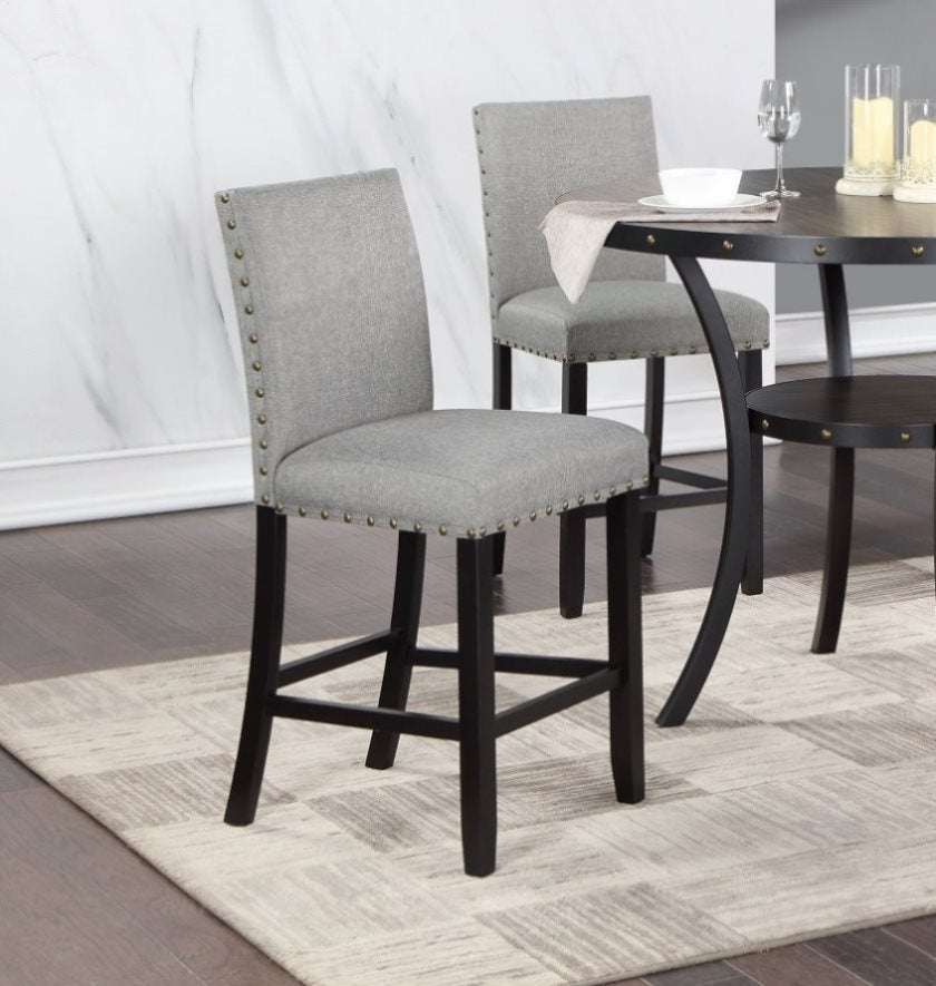 Contemporary StyleGrey Finish, FabricNailhead TrimsCushioned Seats And BackFabric UpholsteryCounter Height Dining ChairsListing Includes - Set of 2 High Chairs Only. Product Description Description:- Designed with attention to detail, our Counter Height Dining Chair boasts a full upholstered seat and back, creating a chic and timeless look. The meticulous craftsmanship ensures...