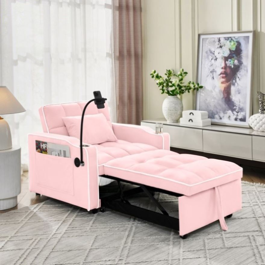 Pull Out Chair BedThis sleeper chairs can easily convert into a Chaise Lounges or a single bed. This convertible design provides maximum living flexibility in the minimum amount of space. You will love the lounging capabilities of this versatile and space-saving pullout couch bed. Appropriate for apartment, dorms, apartments, studios, office, residential theater room.