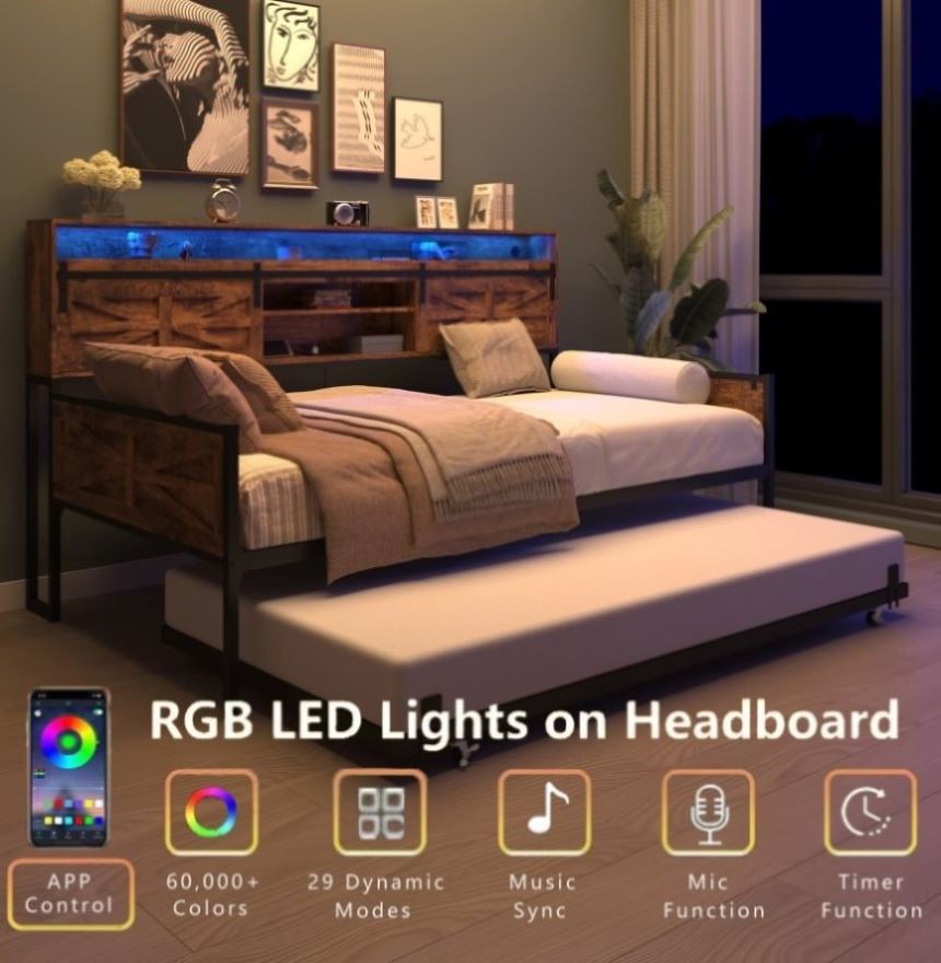 Flexible Daybed Design: Optimize your space with this multi-functional daybed, which can be effortlessly converted into two twin beds or a comfortable sofa bed. Perfect for apartment, bedroom or guest spacesConvenient Charging & LED Lights: Includes a built-in charging station with 2 AC outlets, 1 USB port, and 1 Type-C...