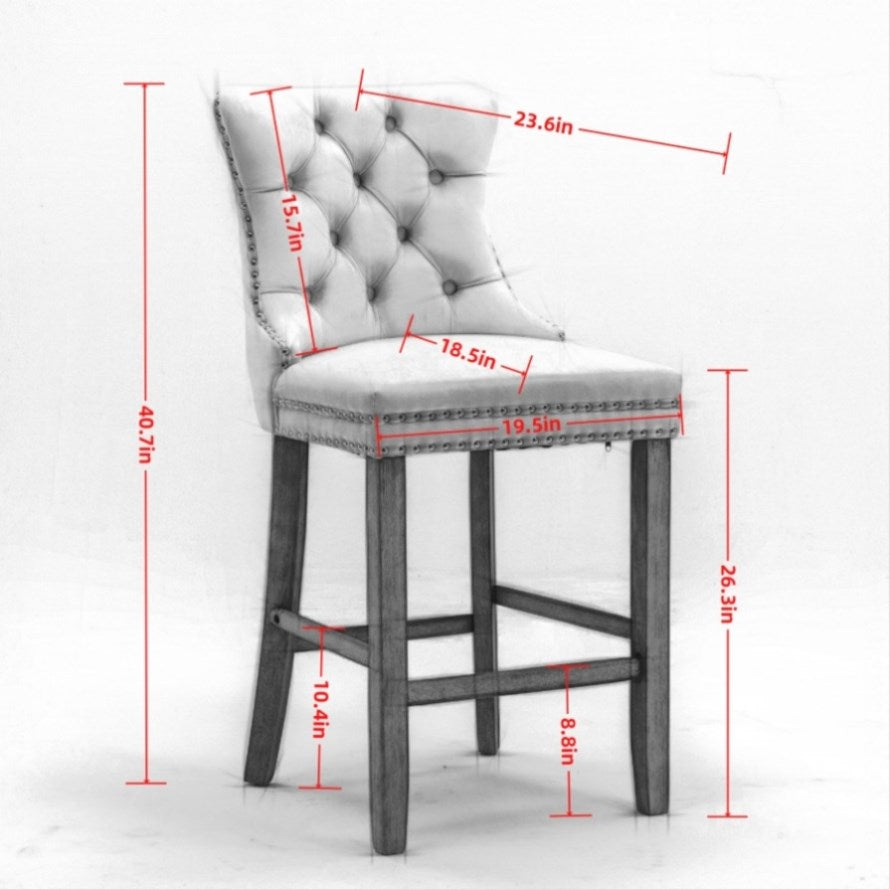 This bar chair set is equipped with high backrest for a strong comfortable back support. Plenty decorative rivet inset around cushion and back not only make it looks noble and elegant but also give the whole chair a feeling of exquisite luxury.
