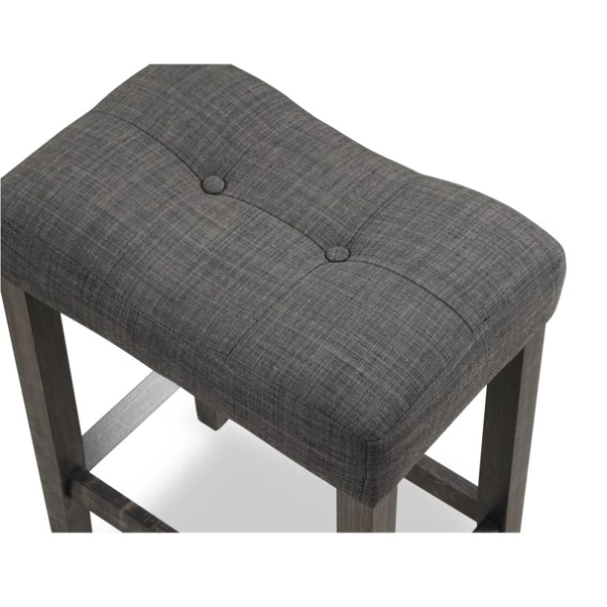 The counter height dining set includes a table and two matching stools. Available in gray and taupe finishButton tufted saddle stools with contoured seat and footrests, upholstered with solid color fabric with thick foam paddingThe table is constructed of high-quality MDF with solid rubberwood legs, finished by the 3D wood...