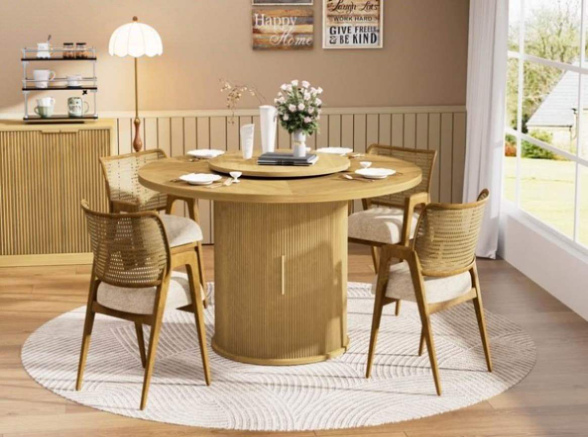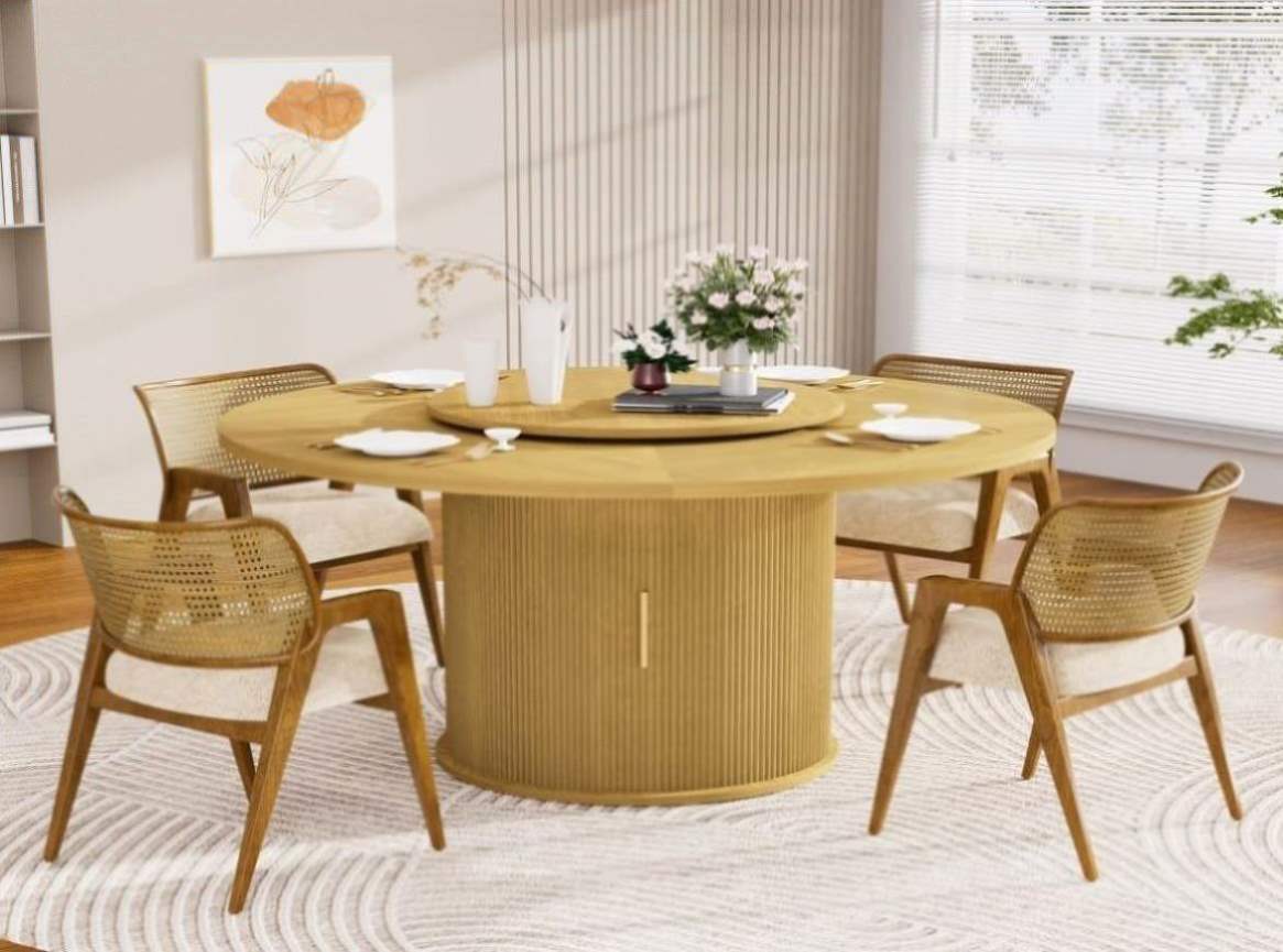 Unique Feature: This dining table features a rotating tabletop, allowing you to serve more food during gatherings with friends and family dinners. You can rotate the tabletop at any time to enjoy your favorite dishes or share delicious food with friends and family, letting them savor it up close.