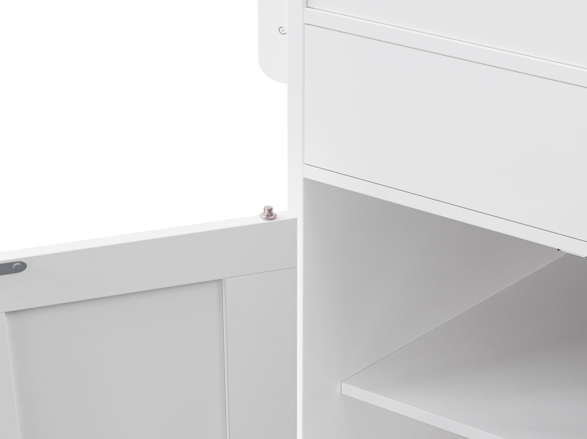 [Sturdy and Safe] The kitchen storage island is made of sturdy, eco-friendly material P2 grade particleboard and MDF. This ensures that it will not be easily damaged when in use and you can use this product freely. The surface of both the tabletop and the product is smooth, comfortable to touch and sturdy. After the challenge of prolonged use, you can still enjoy the convenience of space storage that this product brings.