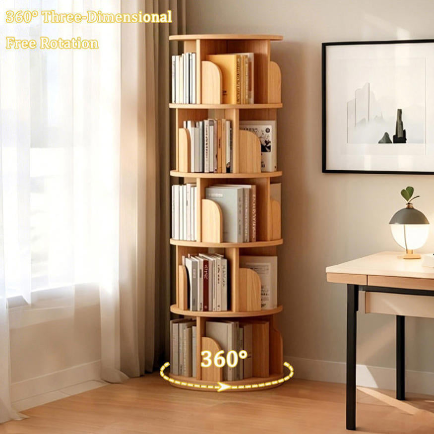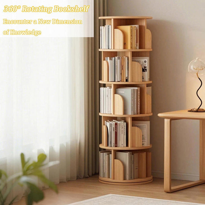 Efficient Storage in Small SpacesThis: 360° rotating bookshelf is designed for small spaces. With its rotating function, users can easily access books or decorations from all angles, and it can also be easily used in places with limited space such as bedrooms and living rooms.