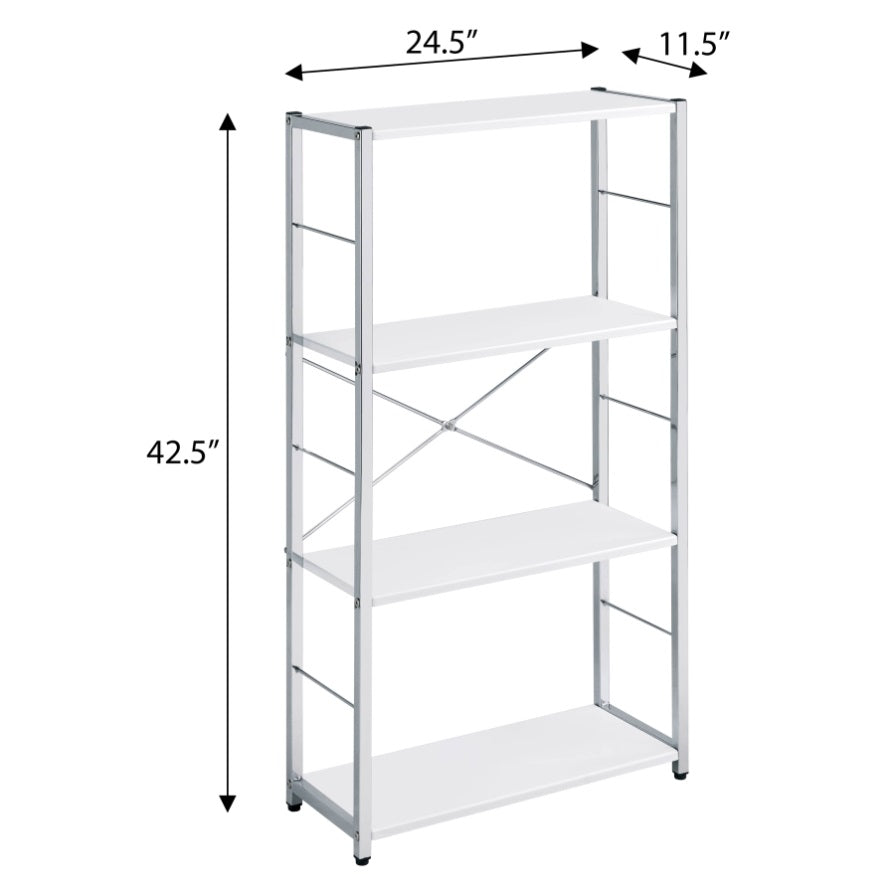 White and Chrome 4-Tier Rectangular Bookshelf B062P184591