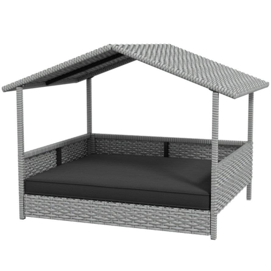 Features: - Contemporary pet cabana design protects from weather, made with steel and PE rattan - Soft padded cushion provides extra comfort to pets - Protective anti-slip pads keep all four legs sturdy - Elevated legs keeps pets from getting too hot or cold - Suitable for small to medium-sized...