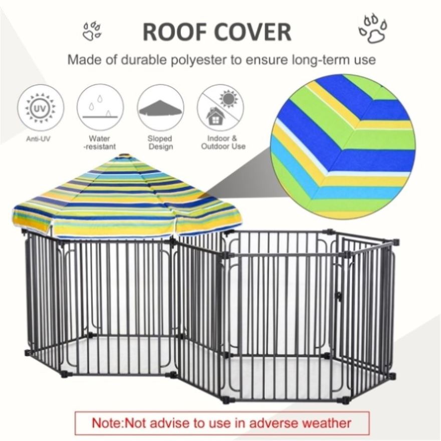 Features: - 10 panels offer your pet ample space to rest and play indoors and outdoors. - The roof cover repels water and the sun's rays. The sloped roof can prevent rain build-up. - The colorful canopy can be mounted on both sides of the kennel and adds style to...