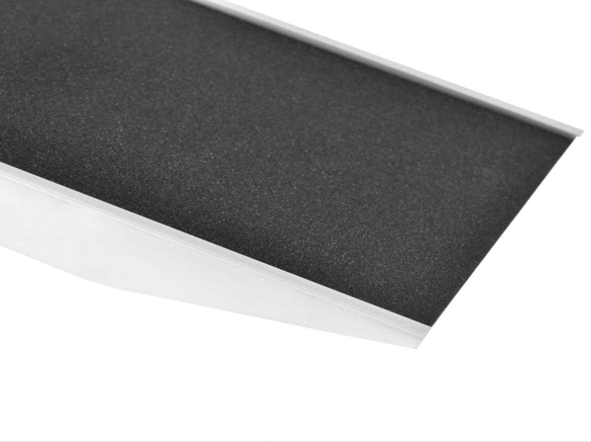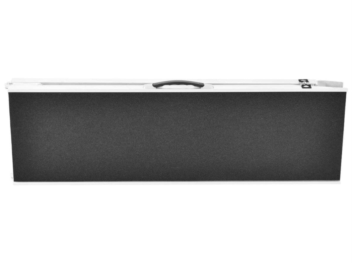 This 8ft dog loading ramps give pets plenty of room for walking up and down to enter and exit a vehicle with ease. Great for minivans, cars and pickup trucks, portable pet loading ramps reduce strain on animal joints by eliminating the need to have to jump to or from an elevated surface. The surface features a paw-friendly grip tape usable in most weather conditions. The dog ramp features a maximum 250 lb capacity and is intended for use by pets only. Portable, lightweight design folds in half for transporting like a suitcase with the built-in carrying handle. Made with durable aluminum construction for years of reliable pet loading.