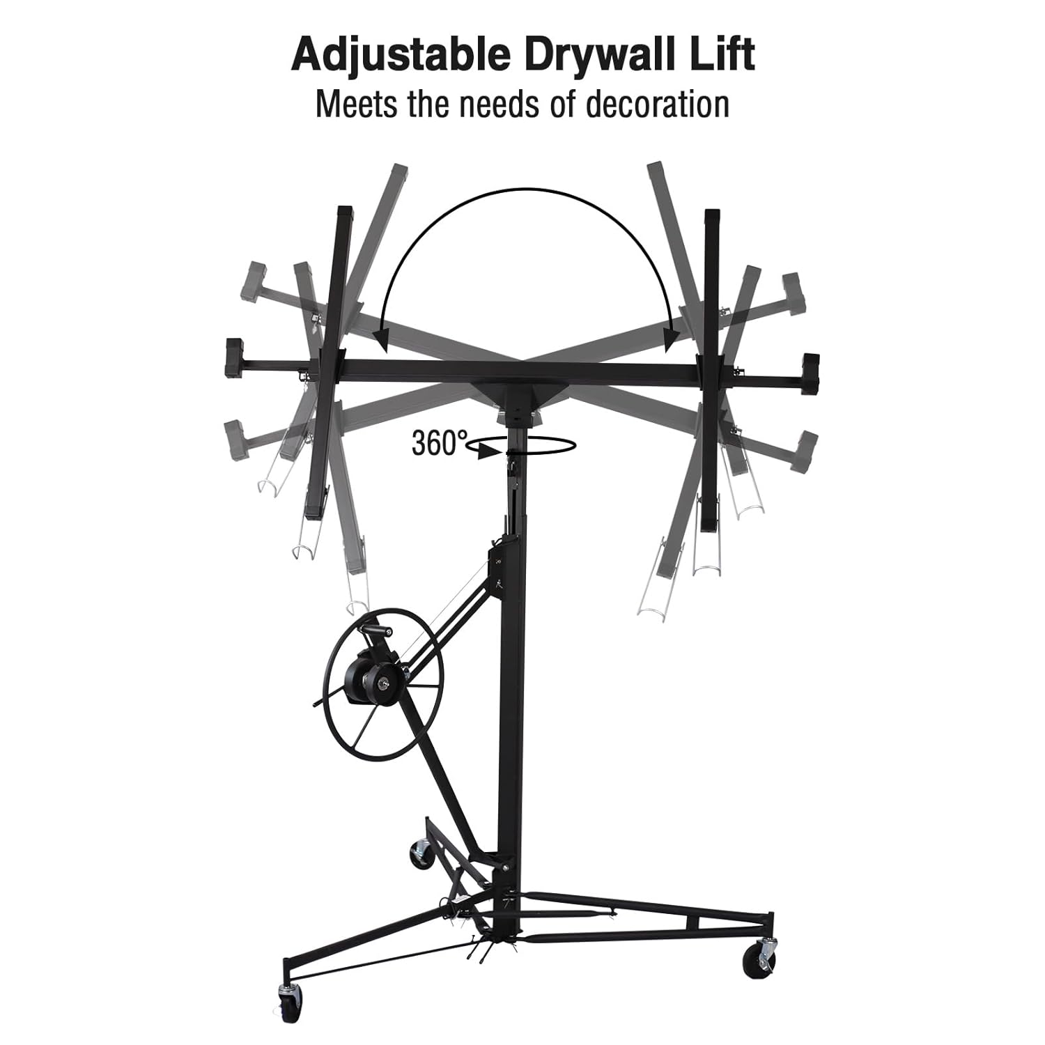 Drywall Lift 11FT, Drywall Lifter Panel Jack, 150LBS Heavy Duty Sheetrock Hoist with 360° Adjustable W2069P293026