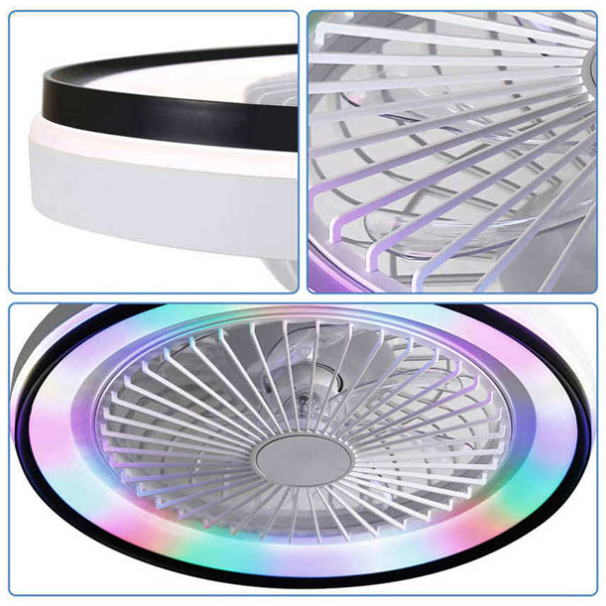 19 Inch RGB Dimmable Led Enclosed Ceiling Fan with Light Flush Mount Bladeless 6 Speed Remote 23895230