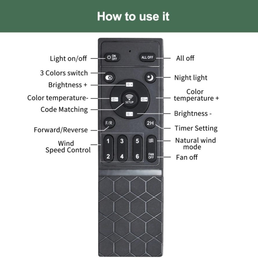 Multi-Speed & 3 TimersWood ceiling fan with light and remote control for easy adjustment of 6 wind speeds,timer function with 1H/2H/4H sleep time,allowing you to set it to automatically turn off at your desired intervals.